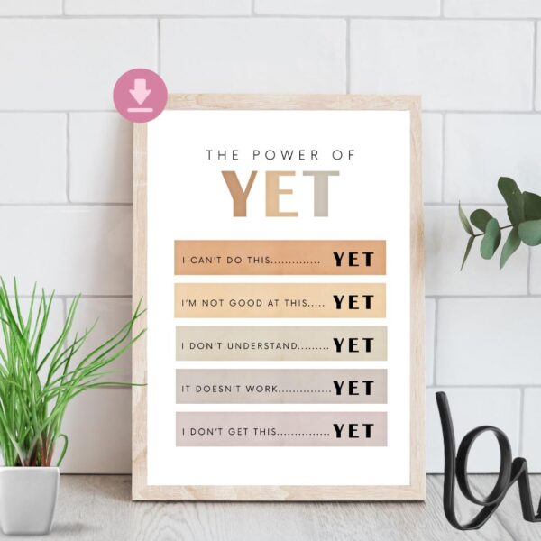 🧠 The Power of Yet Poster | Boho Classroom Decor | Therapy Office Wall Art | Growth Mindset Printable | School Counselor | Mental Health Art